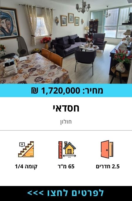 נשמח ללוות אתכם יד ביד, בזכות התמחות ייעודית בשוק הדירות למכירה בחולון והסביבה, על מנת שתבואו על שכרכם בצורה המיטבית.